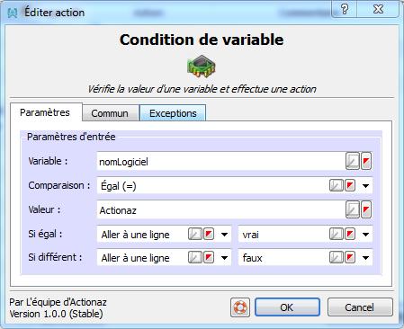 L'action Condition de variables
